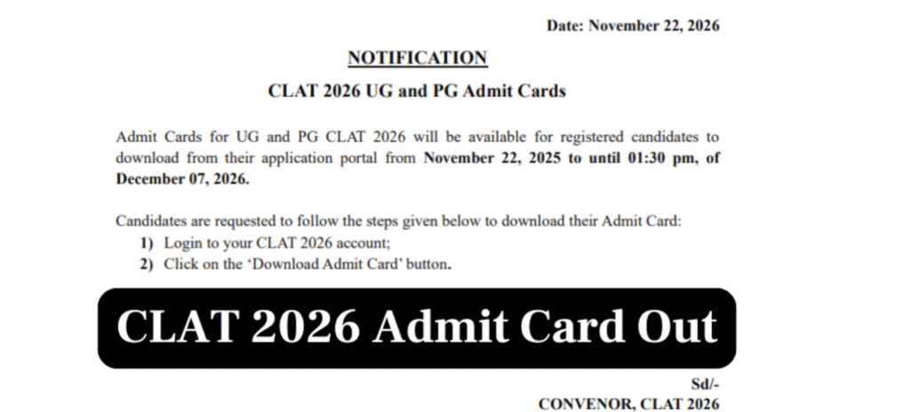 CLAT 2026 Admit Card Released: Exam on 7 December — Download Hall Ticket Now